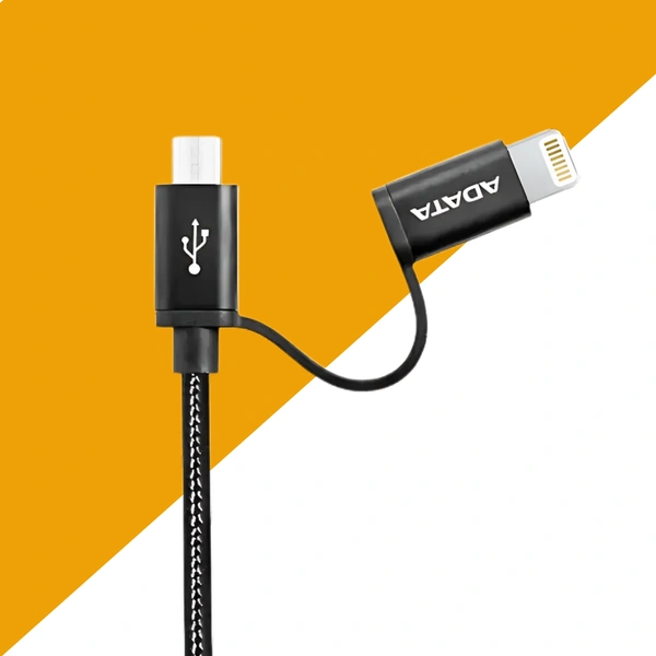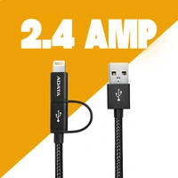 ADATA 2 in 1 2.4 Amp Micro USB & Lightning Data Cable, Universal Compatibility for Smartphones, Tablets & Other Devices, ADP2C-I20B, Black