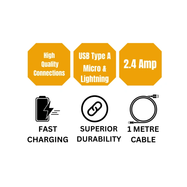 | Cable Type | 2 in 1 (USB to Micro & Lightning |