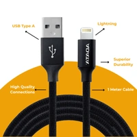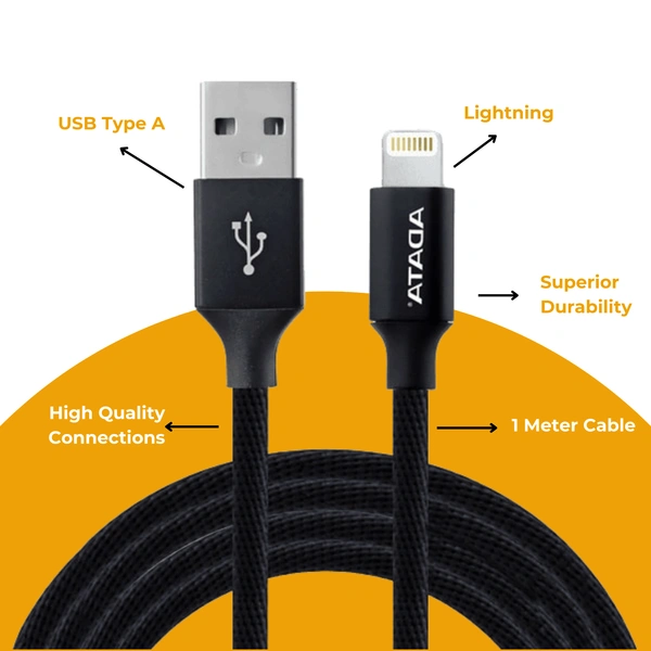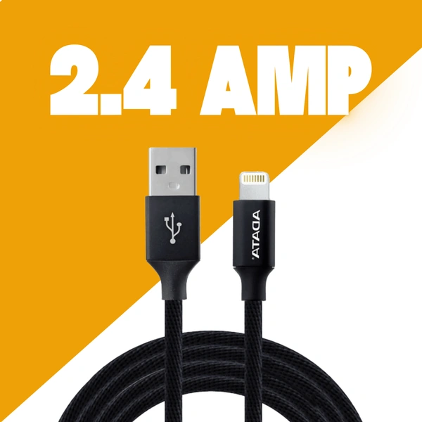 ADATA 2.4 Amp Fast Charge & Sync 1m Fast USB to Lightning Data Cable for Smartphones, Tablets & Other Lightning Devices, Silicone Tangle-Free, High-Durability Charging Cord, ADM-I200B, Black