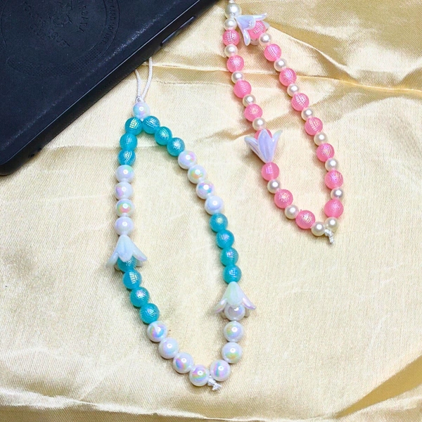 A combo pack featuring two premium beaded phone charms—one with blue and white beads adorned with an elegant flower charm, and another with Pink and white beads featuring a matching flower charm. Lightweight, durable, and trendy, these accessories double as wrist straps while enhancing your smartphone's look. Perfect as a thoughtful gift or a chic addition to your phone!