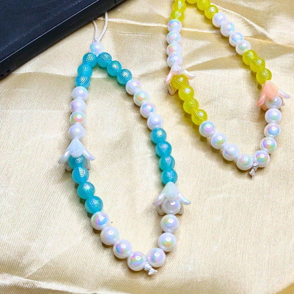 A combo pack featuring two premium beaded phone charms—one with blue and white beads adorned with an elegant flower charm, and another with yellow and white beads featuring a matching flower charm. Lightweight, durable, and trendy, these accessories double as wrist straps while enhancing your smartphone's look. Perfect as a thoughtful gift or a chic addition to your phone!