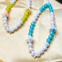 Combo Pack - Blue and White Beaded Phone Charm with Flower Charm & Yellow and White Beaded Phone Charm with Flower Charm, Stylish Accessory, Lightweight, Durable