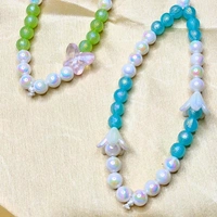 Combo Pack - Green and White Beaded Phone Charm with Butterfly Charm & Blue and White Beaded Phone Charm with Flower Charm, Stylish Accessory, Lightweight, Durable