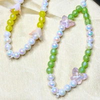 Combo Pack - Yellow and White Beaded Phone Charm with Flower Charm & Green and White Beaded Phone Charm with Butterfly Charm, Stylish Accessory, Lightweight, Durable