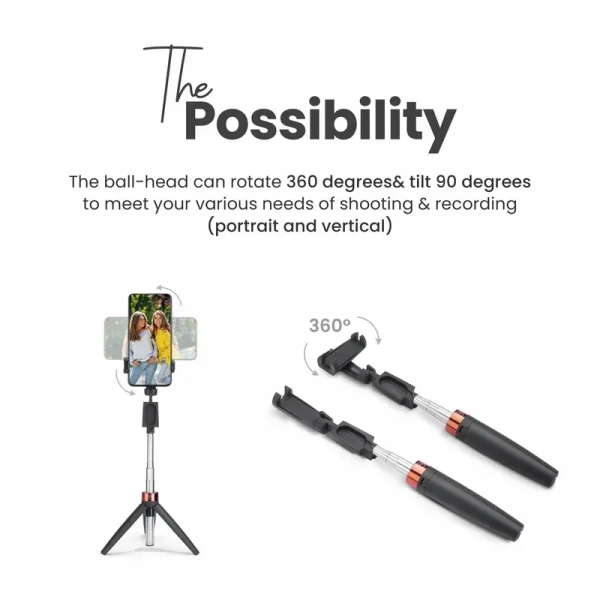 - 2-in-1 Design: Functions as both a selfie stick and a tripod for ultimate flexibility in usage.