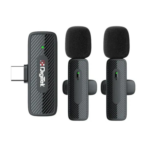 DIGITEK® DWM-008 PRO Wireless Microphone & Receiver | 2x Mic System, 20m Range, 2.4GHz Frequency, 4-Hour Battery, Type-C Connector for Android