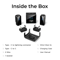 - 2-in-1 Lavalier Wireless System: Comes with both a magnetic collar clip and a lavalier microphone, providing flexibility and ease of use for various recording scenarios.