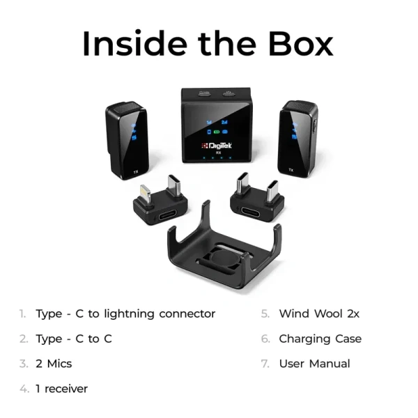 The DIGITEK® DWM-117 2-in-1 Wireless Microphone delivers professional-grade sound for content creators, vloggers, and filmmakers. With noise cancellation, 360° sound capture, and extended wireless range, it ensures exceptional audio quality for smartphones, DSLRs, and tablets. Whether you’re recording live interviews, YouTube videos, or video shoots, this versatile microphone system is designed to meet all your recording needs.