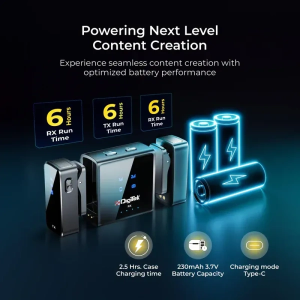 DIGITEK® DWM-117 2-in-1 Wireless Microphone | 70m Range, Noise Cancellation, 360° Sound Capture, 6-Hour Battery, C-to-C & C-to-LTC, for Smartphones & DSLR, Ideal for Vlogging & Video Shoots
