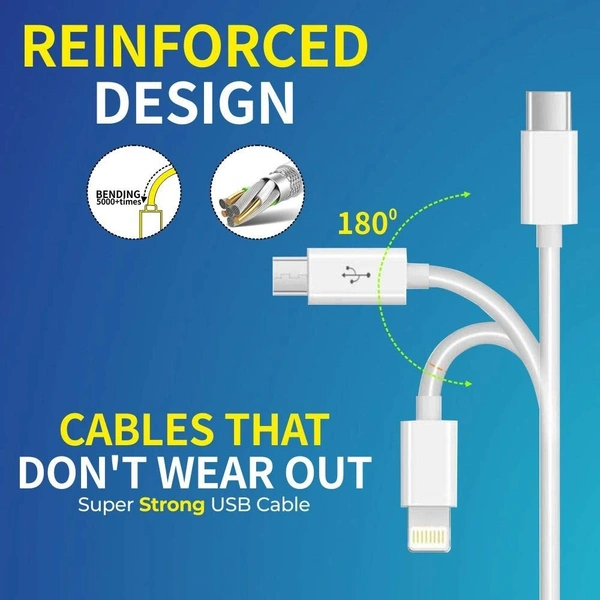 - 3-in-1 Multi-Function Cable – Features Lightning, Type-C, and Micro USB connectors, making it compatible with a wide range of devices.