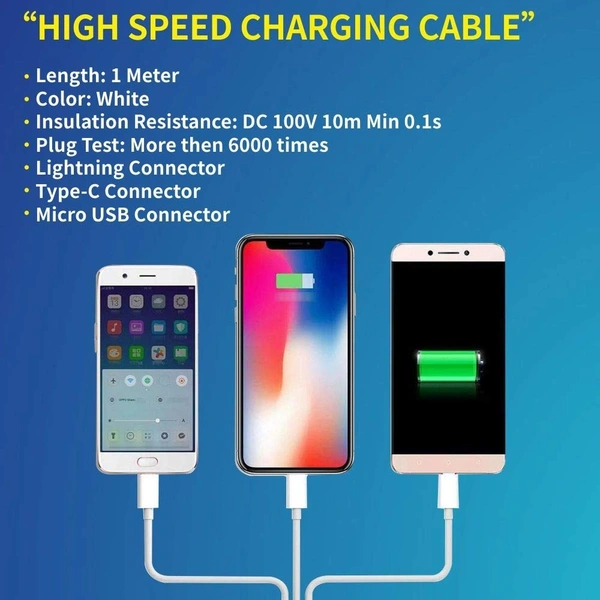 | Cable Type | 3 In 1 (USB to Micro, Type C & Lightning) |