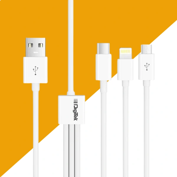 DIGITEK High-Speed 3-in-1 USB Cable – 3A Fast Charging, Lightning, Type-C & Micro USB Connectors, Universal Compatibility for Smartphones, Tablets & Other Devices, DC 1M-3-1, White