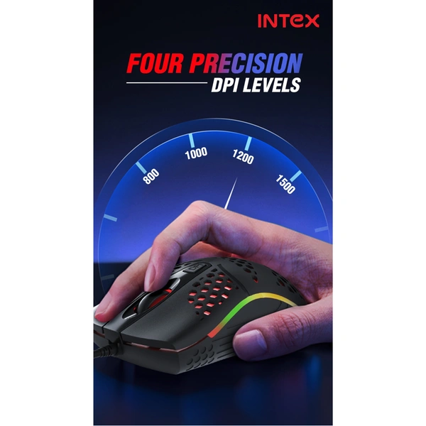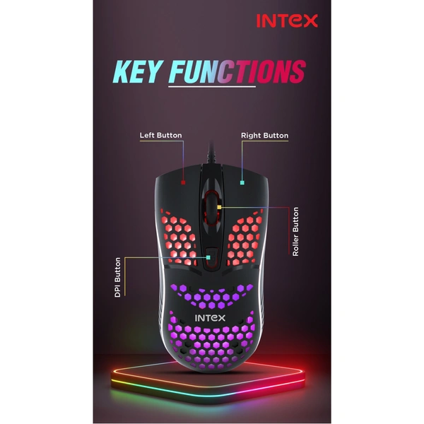 INTEX Boost Gaming Mouse with Honeycomb Design, DPI Control & RGB Backlighting