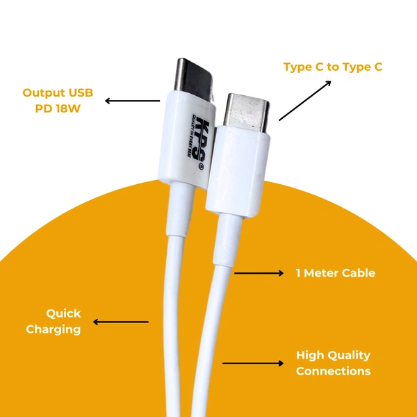 KPS 18W PD Fast Charging 1m Type-C to Type-C Data Cable for Smartphones, Tablets & Other Type-C Devices, Strong & Durable, KP-409, White