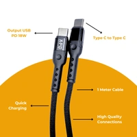 KPS 18W PD Fast Charging 1m Type-C to Type-C Data Cable for Smartphones, Tablets & Other Type-C Devices, Strong & Durable, KP-521, Black
