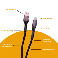 KPS 4.1 Amp Quick Charging 1m Type C Data Cable for Smartphones, Tablets & Other Type C Devices, Durable Design, Compatible with USB 2.0, KP-514, Black