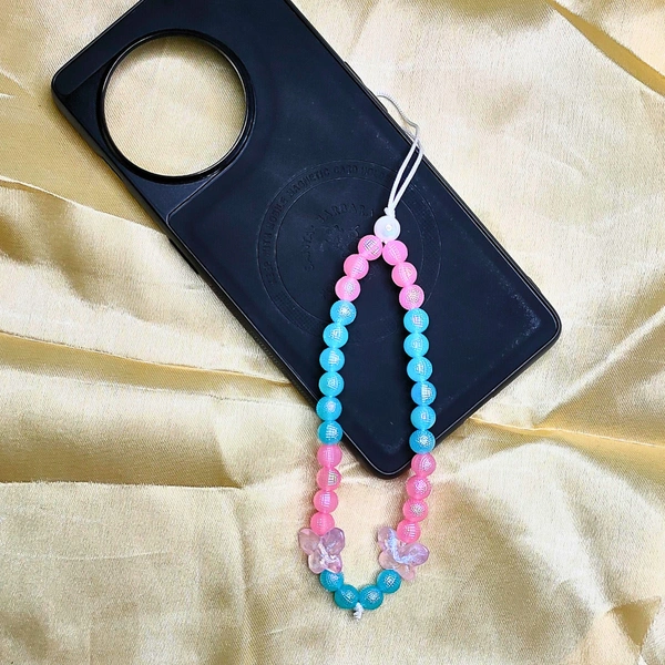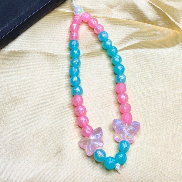 Pink and blue beaded phone charm crafted with premium beads, featuring 2 elegant butterfly charms for added style and functionality. Lightweight, durable, and trendy, this accessory doubles as a wrist strap while enhancing your smartphone's look. Perfect as a thoughtful gift or a chic addition to your phone!