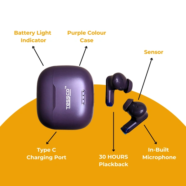 TESSCO IBUD-427 TWS Earbuds, Bluetooth 5.0, 30H Playback, 1000H Standby Time, HD Calls, Voice Assistant, Sweat & Water Resistant, Touch Control, 10m Range, Long Battery Life