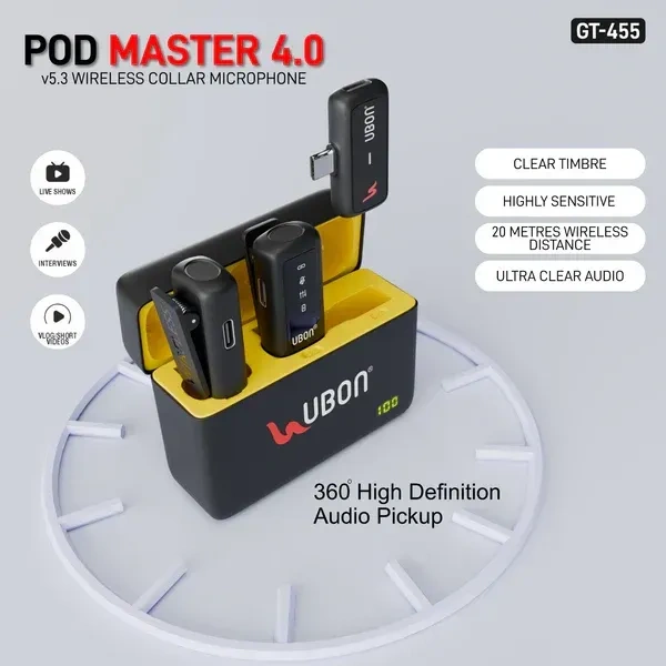 The UBON GT-455 Podcast Series Wireless Collar Microphone is designed to revolutionize your audio experience with its superior features and advanced technology. Perfect for content creators, interviewers, musicians, and social media influencers, the GT-455 delivers crystal-clear sound and unmatched versatility.