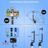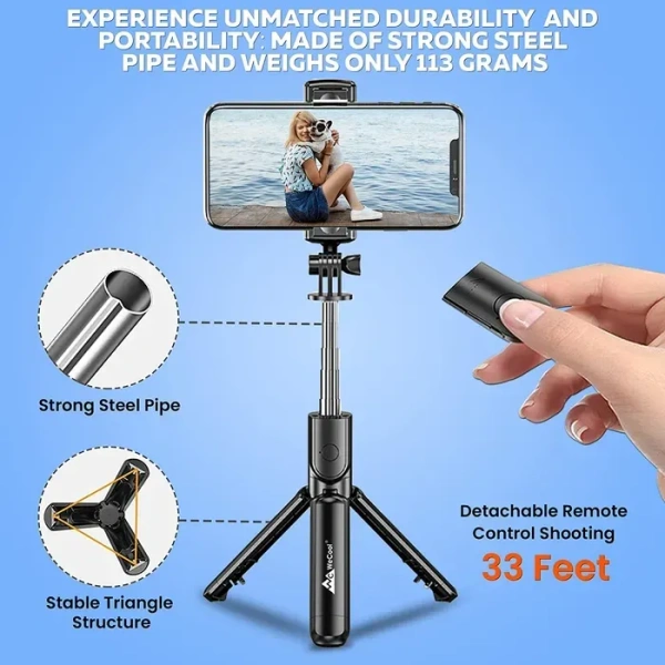 - Hidden Tripod Design: Transform the selfie stick into a stable tripod, ideal for group photos, time-lapses, or live streaming.