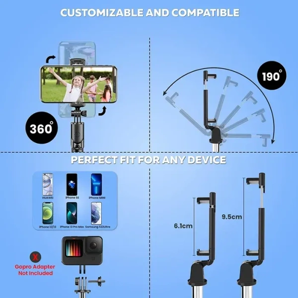 - 360° Angular Adjustment: Adjust the stick for panoramic, vertical, horizontal, or overhead shots, perfect for diverse shooting needs.