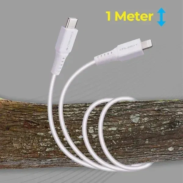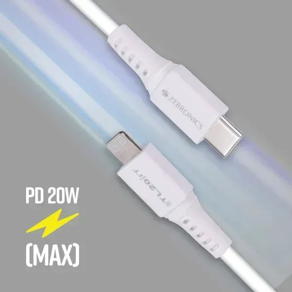 ZEBRONICS 20W Fast Charging 1m Type-C to Lightning Cable for iPhones, iPads & Other Lightning Devices, Rapid Charge & Sync, Durable & Tangle-Free Design, Zeb-TL20 , White