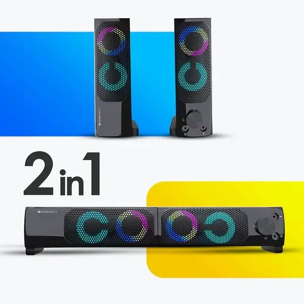 ZEBRONICS Zeb Wonderbar 10 Computer Speaker – 2.0 Speaker, RGB Lights, USB/AUX Support
