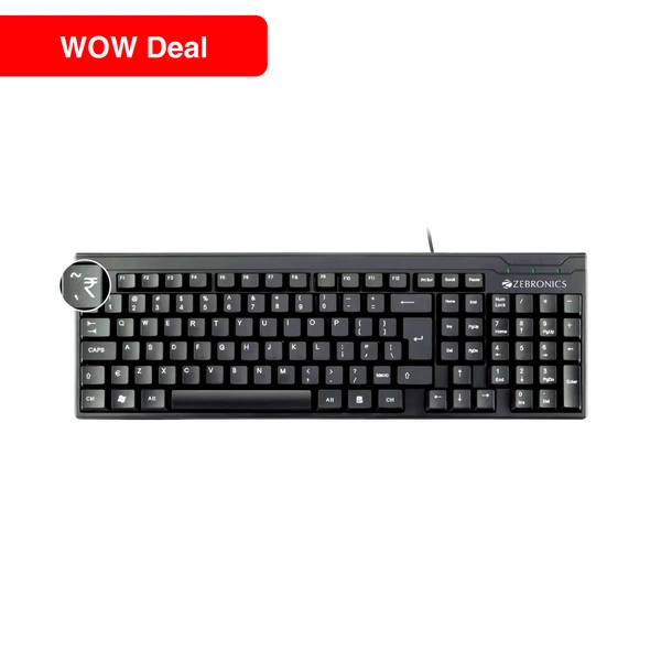 ZEBRONICS ZEB-K35 USB Wired Keyboard with Rupee Key,Spill-Proof and Slim Design (Black)